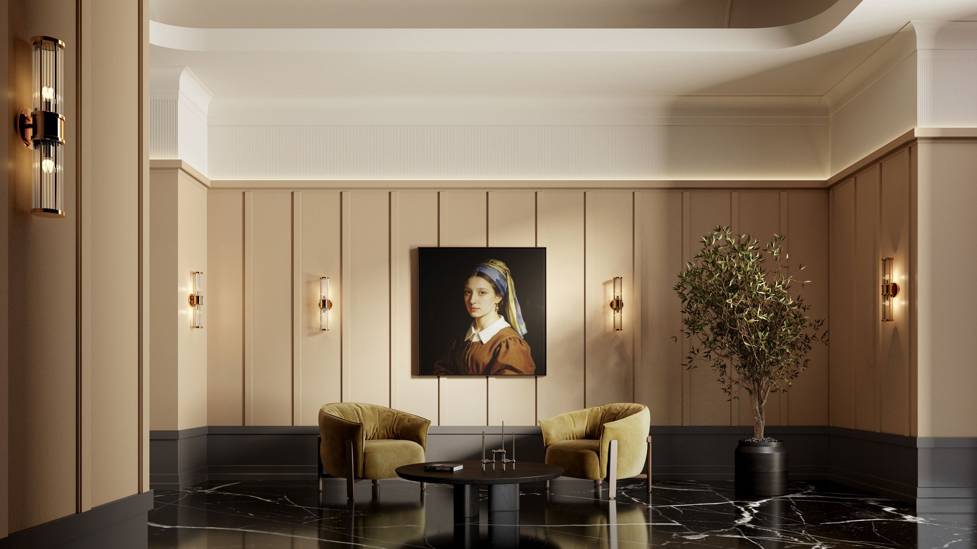 Cornisas, guardasillas, zócalos y decoración mural que se combinan con la iluminación directa o indirecta para crear un ambiente
