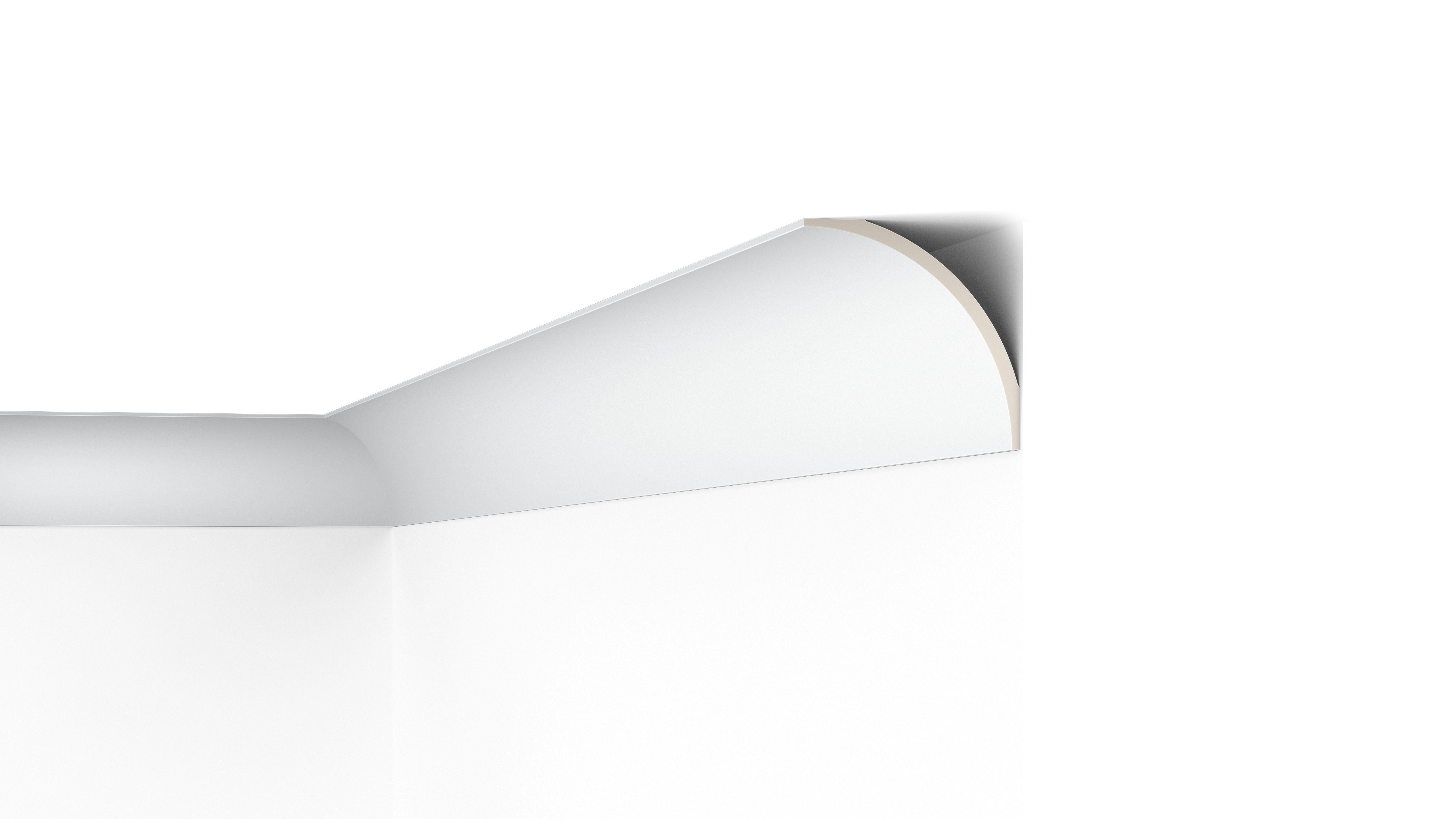 Introduzca esta elegante cornisa en la estancia para completar los acabados entre pared y techo y ampliar así la sensación de anchura. La cornisa AD24 está diseñada para cualquier tipo de interior de cariz moderno. La imponente y suave curva de su forma crea una transición armoniosa entre la pared y el techo.