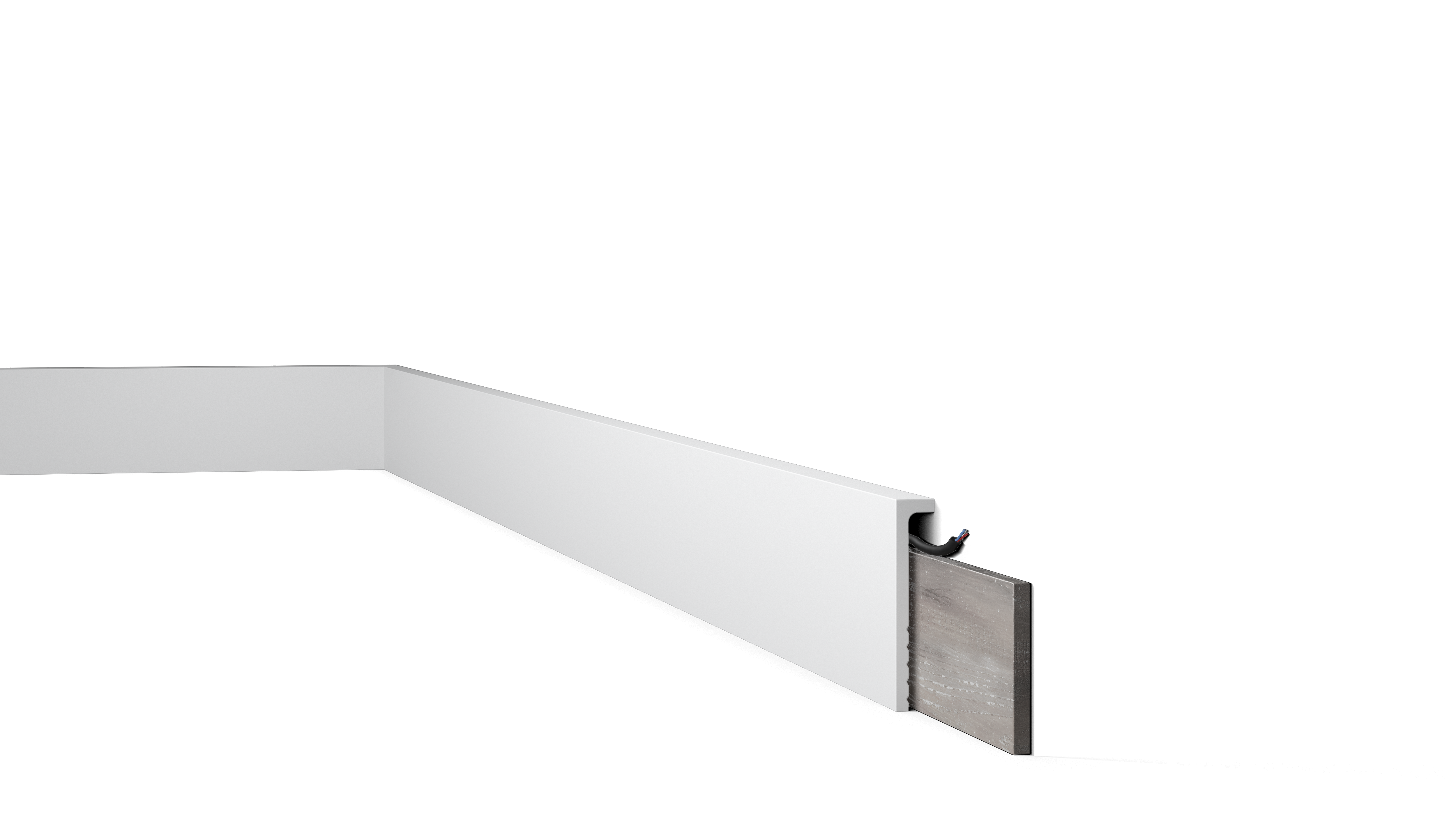 Con el cubre zócalo CF2S no es necesario quitar los rodapiés existentes y el riesgo de daños a las paredes. En la parte posterior del cubre zócalo CF2S hay un espacio de 15mm de ancho para cubrir los rodapiés antiguos. Si se usa CF2S en baldosa, utilice la cola ADEFIX® PLUS. CF2S se presenta con suave imprimación y preparado para ser pintado en el color final. El material resistente a la humedad asegura que CF2S es ideal para entornos húmedos, como baños, spas y cocinas.