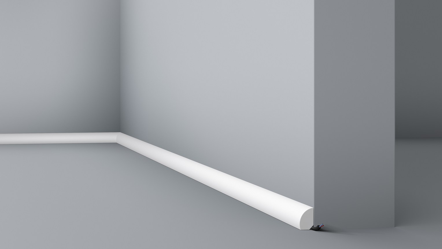 Los perfiles decorativos de Noël & Marquet pueden cubrir con discreción los cableados y las antiestéticas transiciones entre suelos y paredes que inevitablemente aparecen en el diseño de interiores. La ligereza y la facilidad de corte del poliestireno de alta densidad permite que el rodapié FL6 sea rápido y muy fácil de instalar.