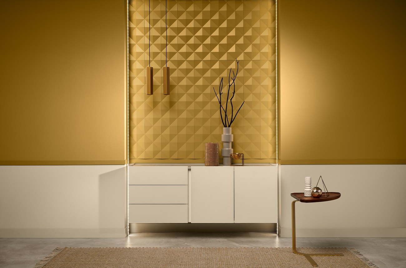 Decoración mural con paneles de pared, losetas, rosetones y guardasillas para imprimir un toque moderno a su interior.