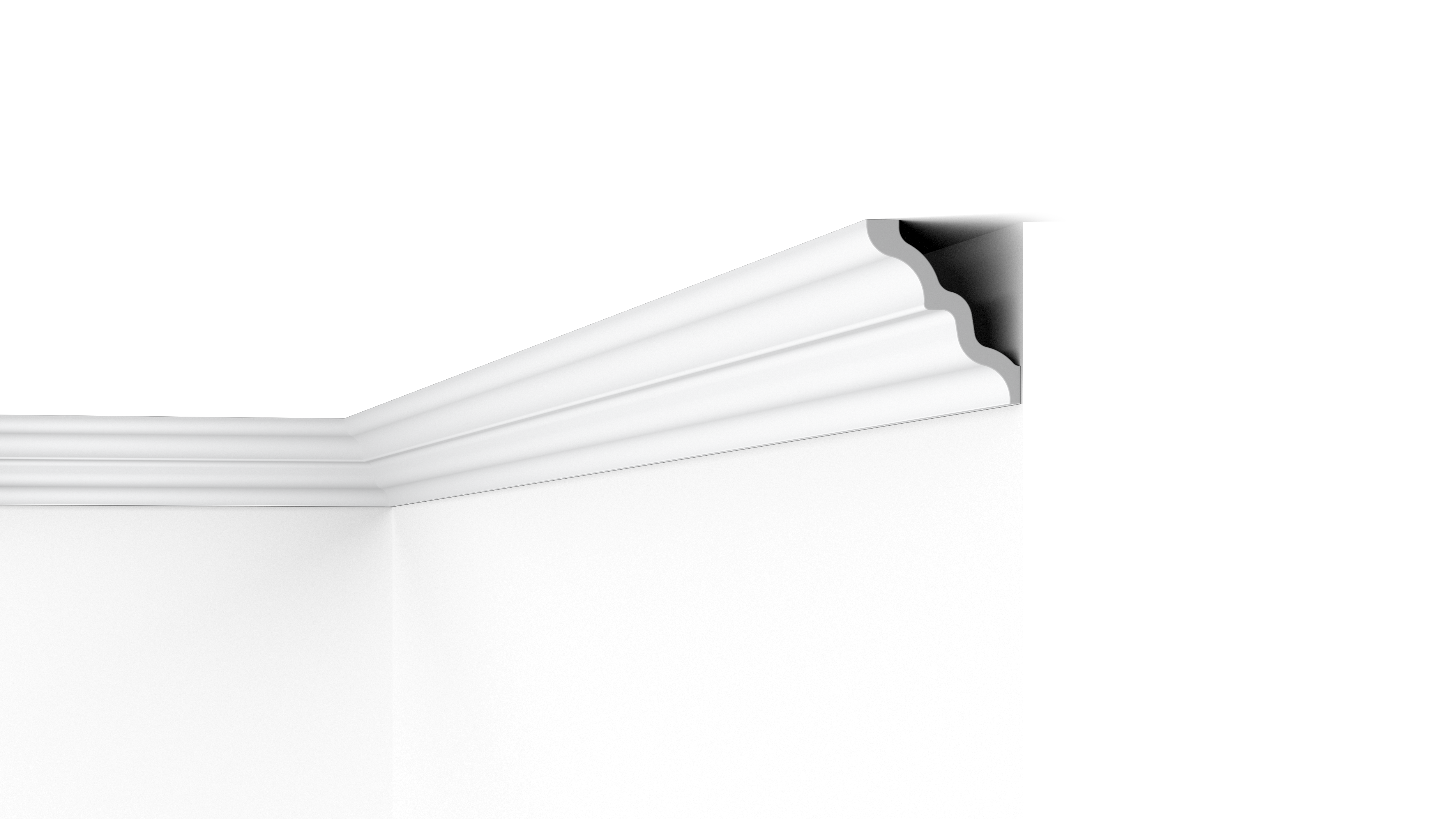 El perfil curvo de la SM NOMASTYL® crea una transición perfecta de pared a techo. Su forma única agrega textura y dimensión a una estancia. Las típicas formas geométricas de una sala de estar o cocina se pueden realzar con la moldura SM NOMASTYL®.