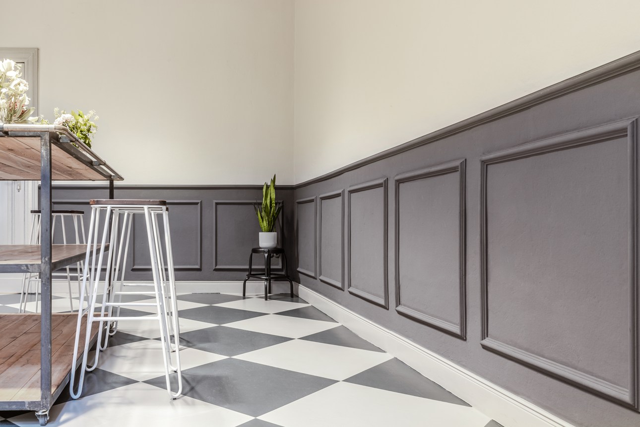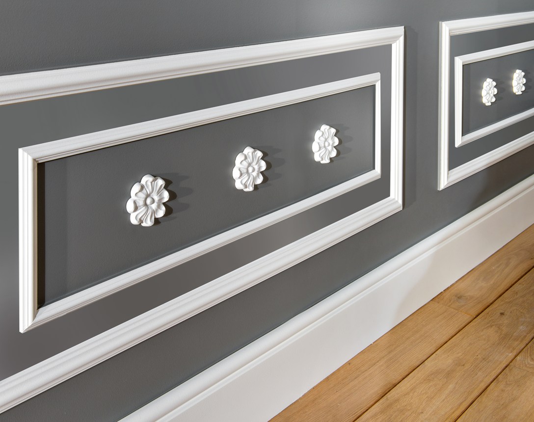 Decoración mural con paneles de pared, losetas, rosetones y guardasillas para imprimir un toque moderno a su interior.
