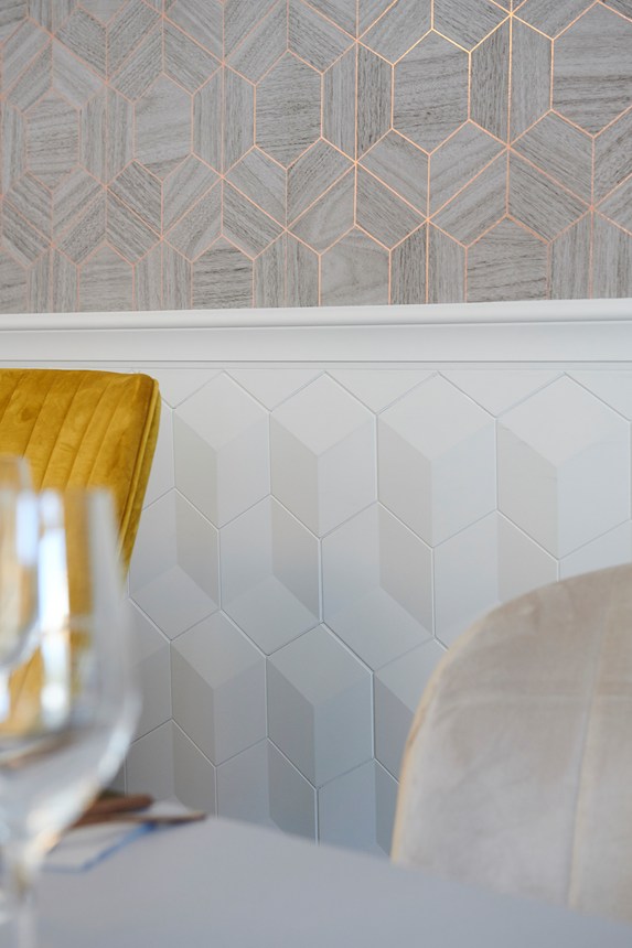 Decoración mural con paneles de pared, losetas, rosetones y guardasillas para imprimir un toque moderno a su interior.