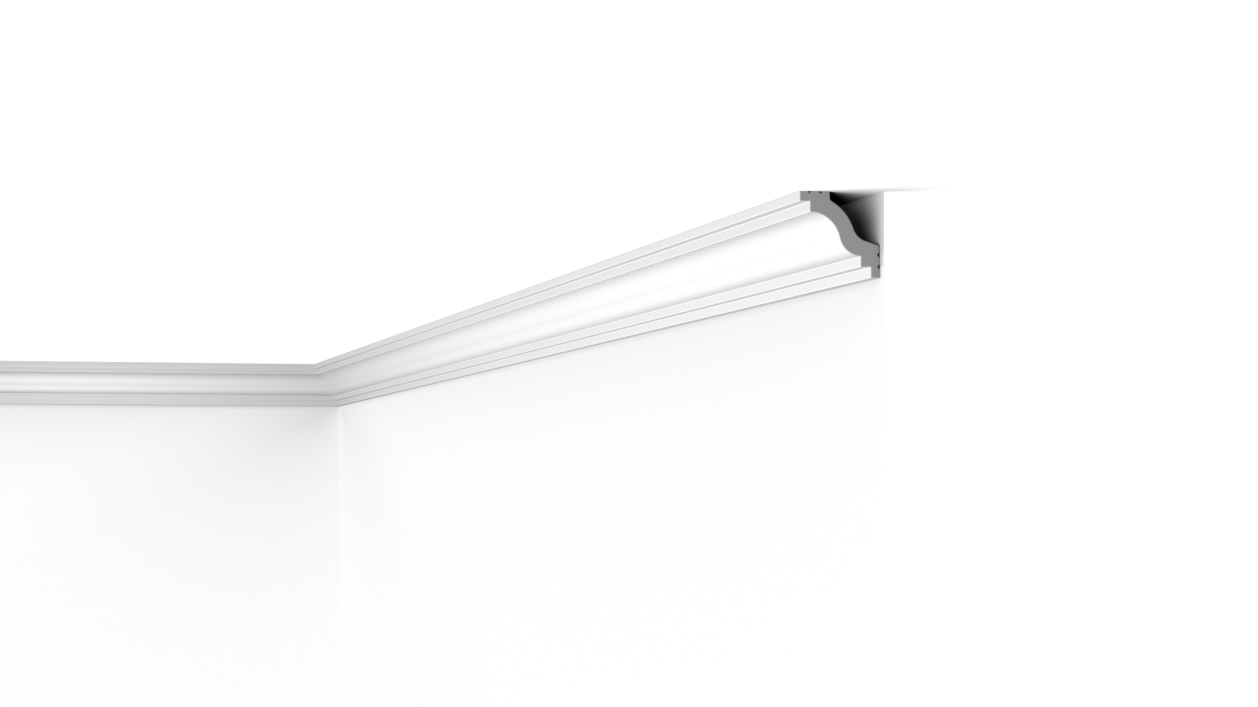 La cornisa WT6 se sirve ya con una suave imprimación de fábrica y lista para pintar. Detrás de la moldura hay un pequeño espacio que permite ocultar cables, grietas e imperfecciones. Su instalación es sencilla y eficiente gracias a su material. Ligero, pero resistente y duradero.