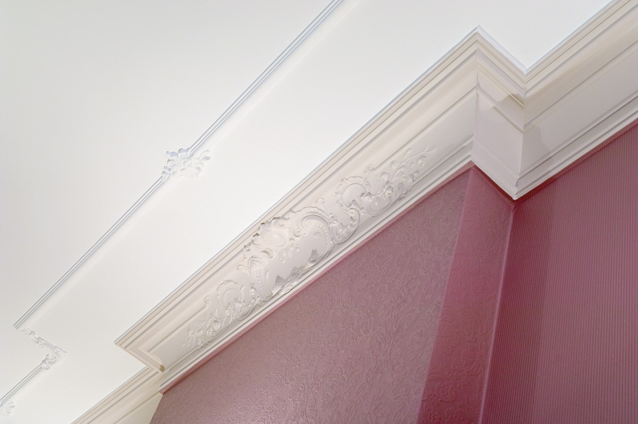 Cornisas, guardasillas, zócalos y decoración mural que se combinan con la iluminación directa o indirecta para crear un ambiente