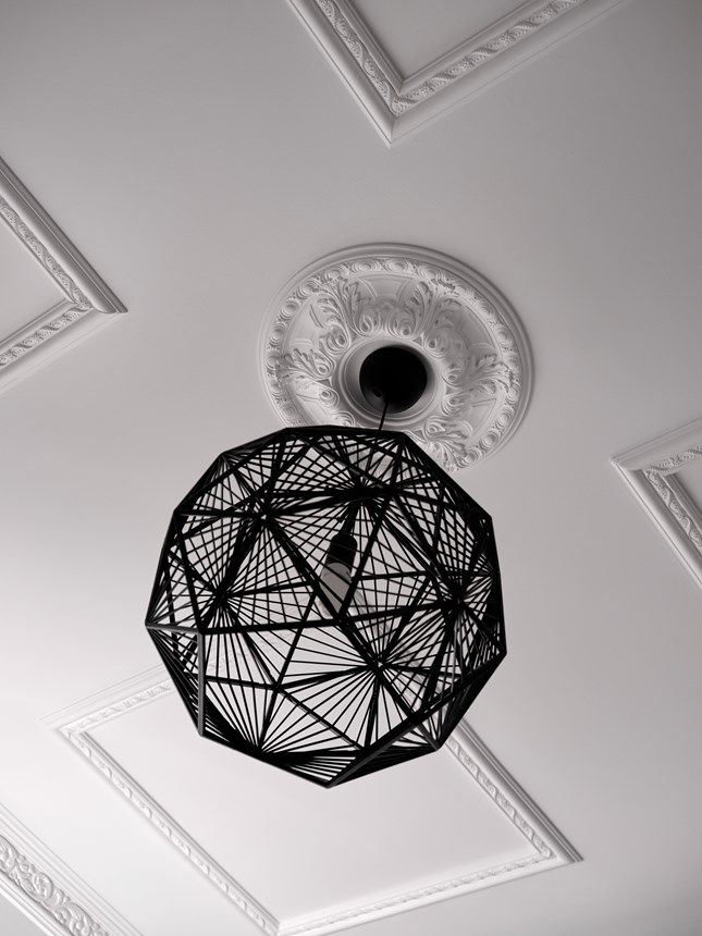 Cornijas, guardas, rodapés e decoração de parede que combinam com iluminação direta ou indireta. Para criar uma atmosfera