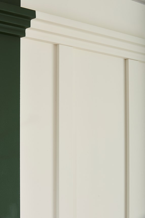 Decoração de parede com painéis de parede, revestimento, rosetas e rodapés para dar um toque moderno ao seu interior.